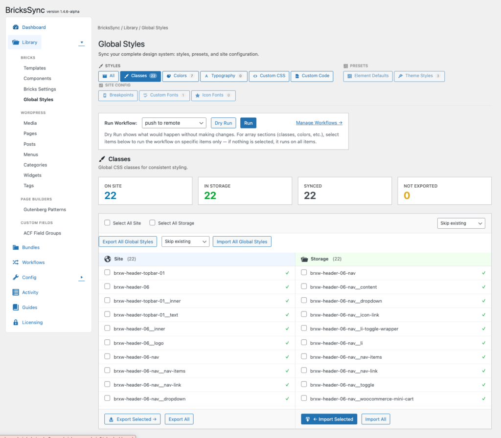 Because Bricks stores templates, components, styles, and settings in the database, there was no good or automated way to transfer theme changes between environments. That limitation is what pushed me to create BricksSync.
