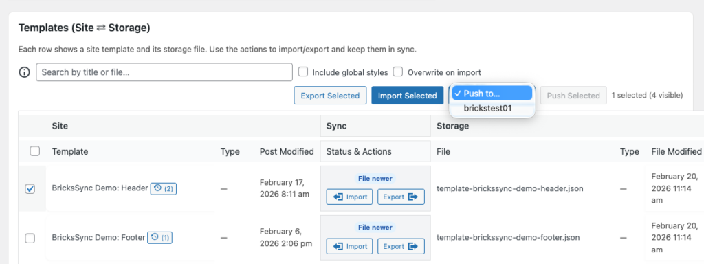 Keeping multiple Bricks sites consistent can be messy — exporting, uploading, and trying to remember which site has the latest version of your templates or components.